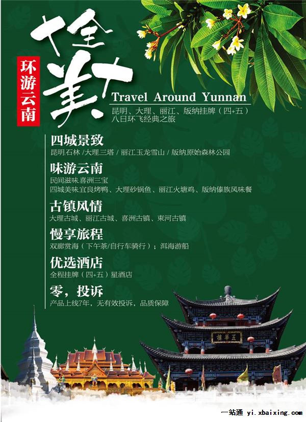 玉龙雪山,冰川大索道,近距离观赏雪峰、冰川 喜洲古镇,南诏重镇,露天白族民居博物馆 双廊古镇,千年古渔村,悠享下午茶/洱海骑行1小时 品质如一,全程挂牌(四+五星)酒店 星级明示,指定入住,星级承诺每一晚舒适好眠 昆明:绿洲酒店、佳华酒店(挂牌五星) 大理:风花雪月大酒店(挂牌五星)、中和坊酒店 丽江:观光酒店、金泉酒店、阿丹阁酒店、凯达酒店、侨鑫酒店、绿韵酒店(挂牌四星) 版纳:活发酒店、景兰国际大酒店 优化行程,环飞省时省力,游览更深入 昆明:石林景区-世界自然遗产 大理:大游船游洱海,崇圣寺三塔-大理国记忆,双廊-千年古渔村,喜洲-古镇风情 丽江:丽江古城-世界文化遗产;束河古镇-中国魅力名镇;玉龙雪山-北半球最南雪山;观音峡-丽江第一景;三股水-茶马古道 版纳:原始森林公园-自然之旅,勐泐大佛寺-傣王朝追忆,野象谷-奇妙体验 夜色古城,风光之夜,幸运派送 “风光之夜”酒吧主题体验 一等奖:1名 “缤纷泰国秀”豪华泰国双人游*泰国风光旅游有限公司提供,高品质泰国游,绝无自费! 二等奖:1名 小米充电宝 三等奖:多名 风光旅游“风行会”精美会员礼品 餐标提升,四餐地道美食,三款喜洲味道 餐标30元起,特色餐明示标准(宜良烤鸭35元、大理砂锅鱼35元、丽江火塘鸡50元、傣族全风味餐50元)喜洲三宝(饵块、乳扇、粑粑) 行程安排河北中旅www.u0311.cn